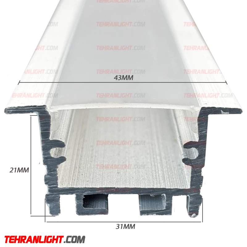 قاب چراغ لاینی رویه43برش31ارتفاع21کد5 با طراحی لبهدار و ظریف، انتخابی ایدهآل برای نصبهای روکار در سقفهای کناف، کابینتها و دیوارهای دکوراتیو است.