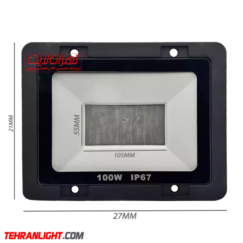 قاب پروژکتور 100 وات SMD تمام آلومینیوم با شیشه سکوریت IP67
