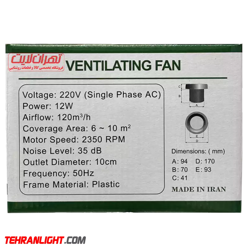 - مناسب کار دائم: با توان مصرفی فوقالعاده پایین ۱۲ وات، میتواند شبانهروز روشن بماند تا بوی نامطبوع و گازها را بیرون بکشد. سیمهای داخلی تمام مس هم به کاهش مصرف برق و راندمان بالای موتور کمک میکنند.