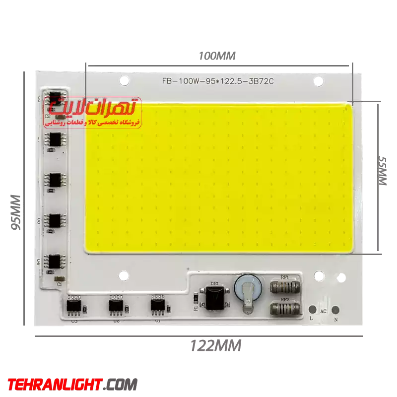 چیپ 100 وات 220 ولت مهتابی cob مدل 95*122 برند MS مناسب برای تعمیر و تولید پروژکتور