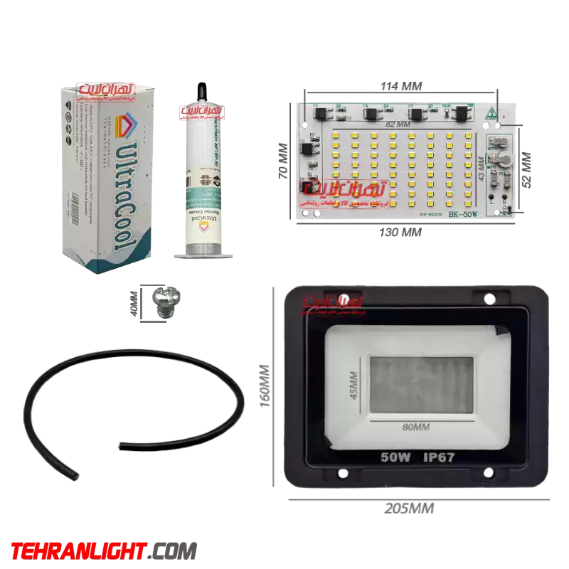 این کیت، یک بسته کامل ۶ عددی برای تولید پروژکتورهای ۵۰ وات است که برای نوردهی قوی و استفاده در محیطهای بیرونی طراحی شده است. تمام قطعات این پکیج از جمله چیپ فابریک XGD، قاب کامل آلومینیومی و خمیر ضریب بالا، کیفیت نهایی محصول شما را تضمین میکنند.