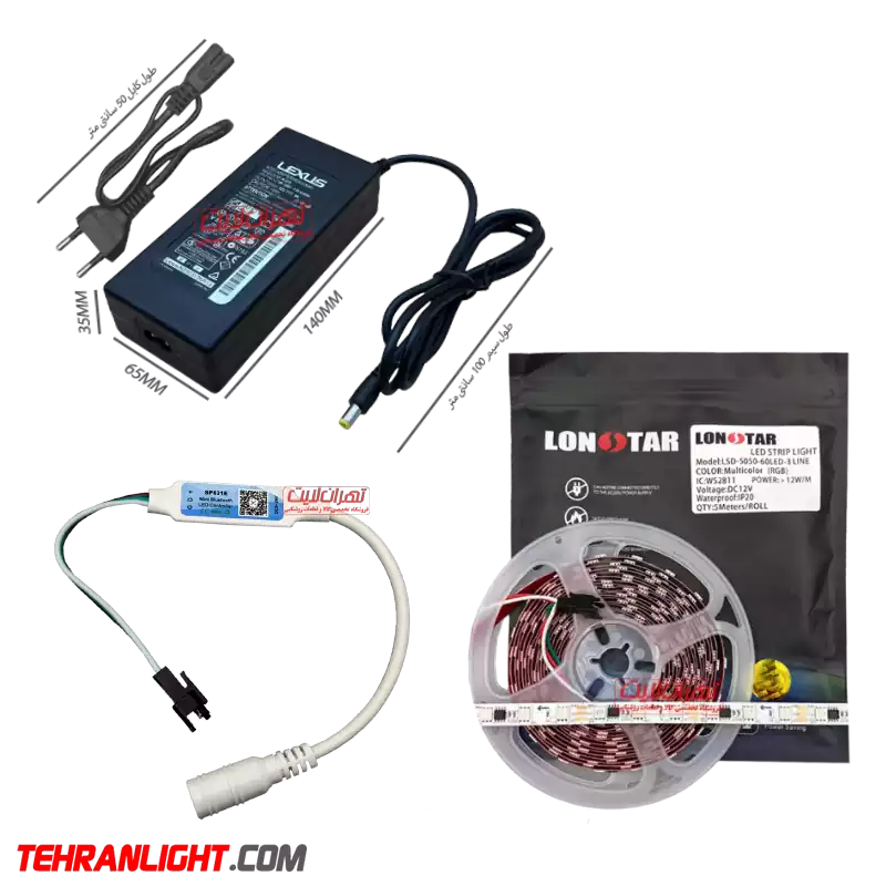 ریسه برنامه پذیر RGB بسته 5 متری با اپلیکیشن موزیکال به همراه ماژول و آداپتور